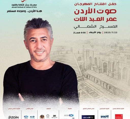 إختارت إدارة “مهرجان جرش للثقافة والفنون”، “صوت الأردن” الفنان عمر العبداللات، ليكون نجم حفل افتتاح دورة المهرجان التاسعة والثلاثين، وذلك يوم الأربعاء 23/7/2025، والذي يقام هذا العام من تحت شعار: “هنا الأردن .. ومجده مستمر”.