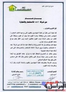 وفي نفس التوقيت أعلنت شركة أخرى”أيه&تي”، شراء القطعة التي أكدت نقابة المهندسين تعاقدها مع المحافظة عليها لإنشاء نفس المشروع الذي ستقيمه الشركة على الأرض.