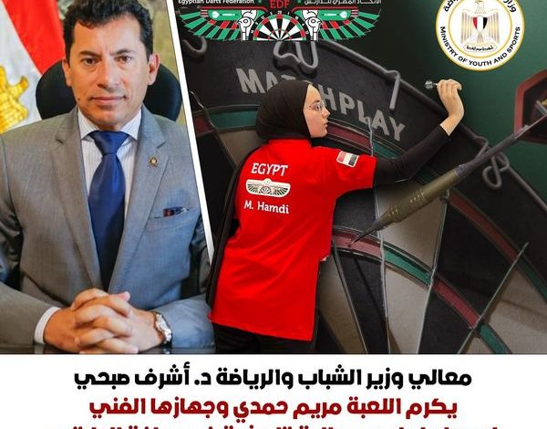 وزير الشباب والرياضة يكرّم اللاعبة مريم حمدي لحصولها على برونزية كأس العالم للدارتس